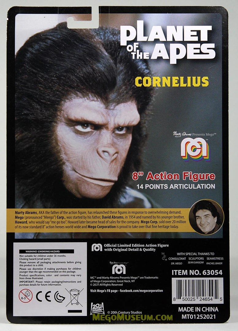 Dr. Cornelius is a chimpanzee archaeologist and historian, appearing in the original novel of Planet Of The Apes, and also the first three installments of the classic movie series of the same name, from the 1960s and 1970s. He was portrayed mainly by actor Roddy McDowall, but also by David Watson in the second movie Beneath The Planet of The Apes.