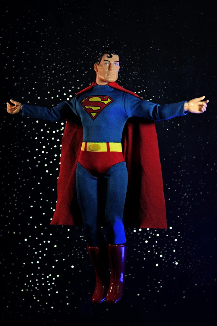 The Man of Steel is flying his way back to the Megoverse! Mego proudly presents The World’s Greatest Mego Heroes 14” Superman action figure! “Faster than a speeding bullet. More powerful than a locomotive. Able to leap tall buildings in a single bound!”