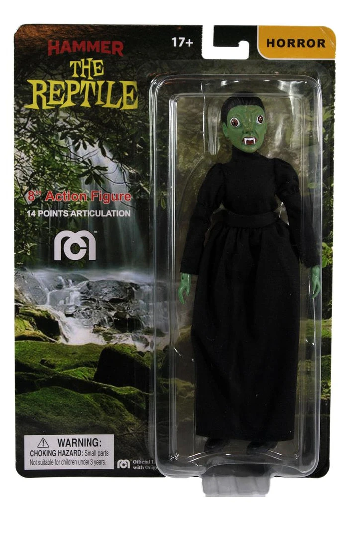 Mego is thrilled to present The World’s Greatest Mego Monsters The Reptile 8” action figure – officially licensed from Hammer Horror! The Reptile slithers her way into the Megoverse for the first time ever in the Classic Mego style!
