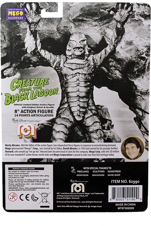 Mego Corporation re-launched in 2018 with a partnership between Marty Abrams and Joel Rosenzweig, focusing on 8-inch Action figures and launching with popular licenses from CBS, Warner Brothers, Sony, and Epic.