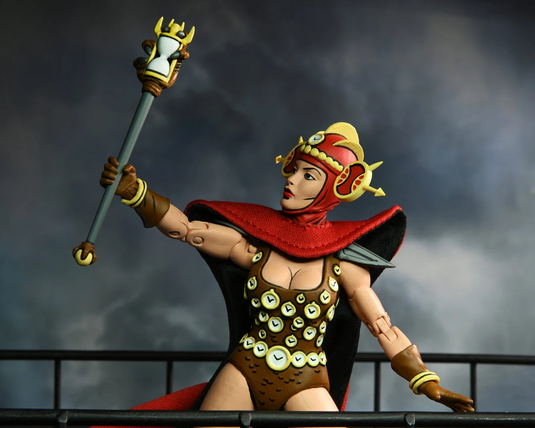 The Renet action figure stands approximately 6″ tall, and includes soft goods cape, interchangeable heads and hands, Time Scepter, assorted weapons, and more!