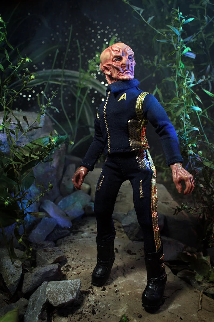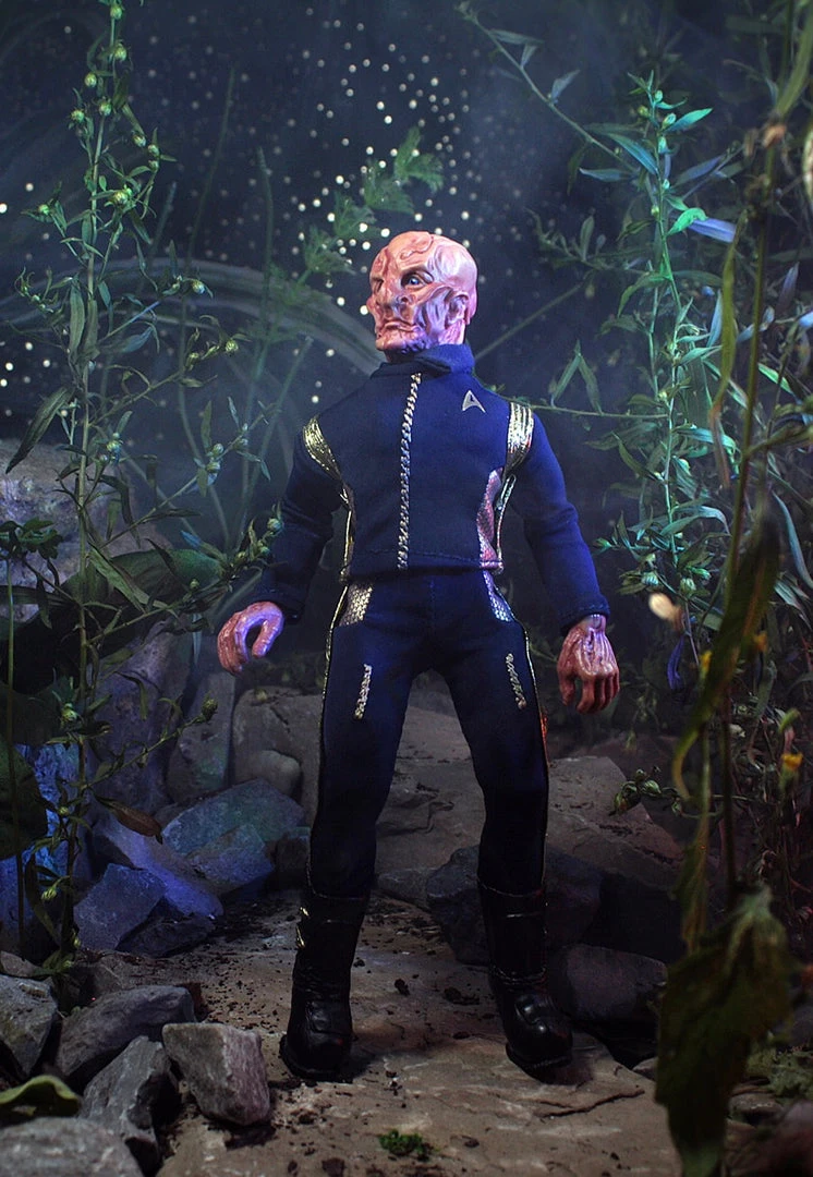 Following the destruction of the Shenzhou and the death of Captain Philippa Georgiou during the Battle at the Binary Stars in 2256, Saru – the first Kelpien to serve in Starfleet — was promoted to First Officer on the Discovery under Captain Gabriel Lorca. He served as acting captain during and after the Discovery’s excursion to the Mirror Universe, and also learned, much to his distress, that in the Mirror Universe, Kelpiens were not only slaves, but a delicacy.
