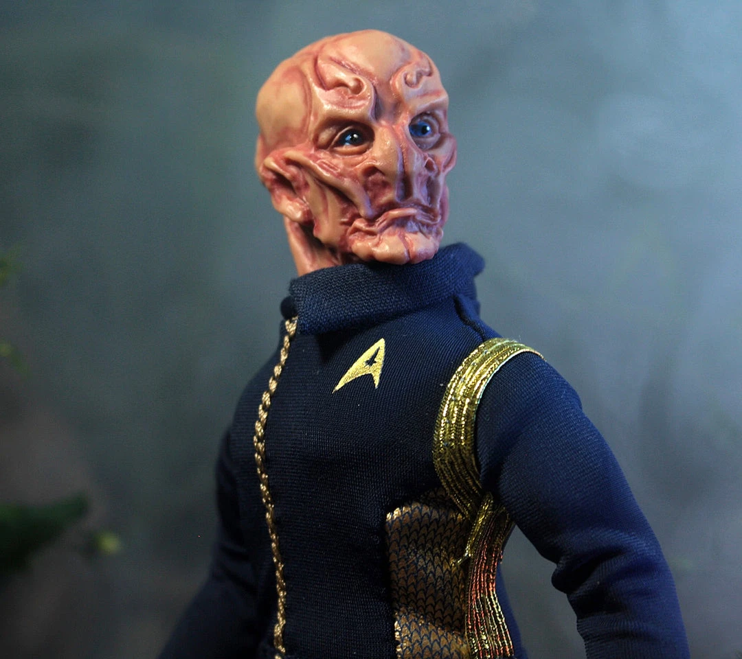 A Starfleet Science Officer and Lieutenant Commander initially on the U.S.S. Shenzhou and then on the U.S.S. Discovery, Saru is a Kelpien, an alien prey species that lives in a perpetual state of fear and has biologically fostered the ability to sense threats, particularly impending death. That ability is manifested in their threat ganglia, which pop up by their ears when a Kelpien perceives danger.