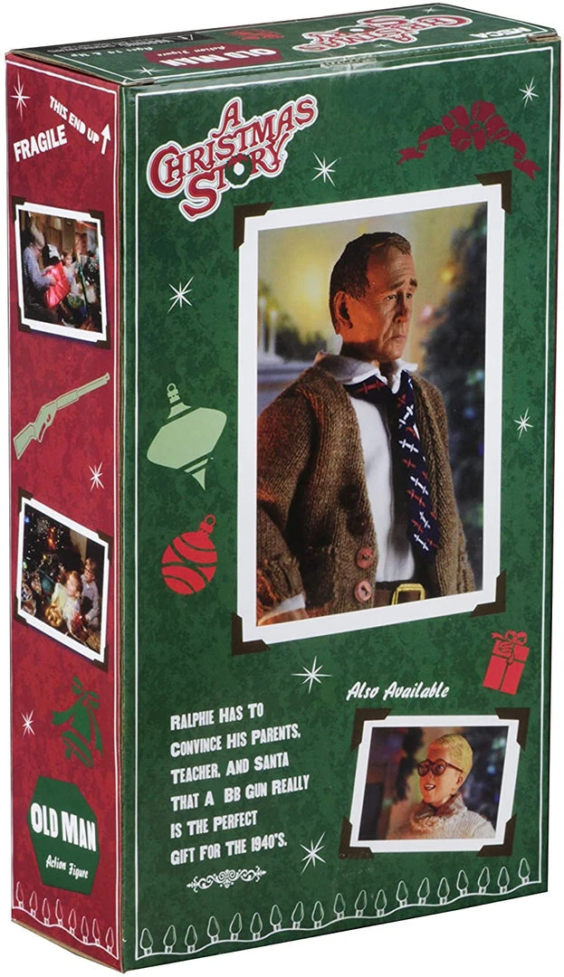 Ralphie’s dad, lovingly referred to as the “Old Man,” stands 8” tall, has fabric clothing, and is fully articulated. The figure comes with plenty of accessories for extra holiday fun: two interchangeable heads, Leg Lamp (it’s a Major Award), and more!