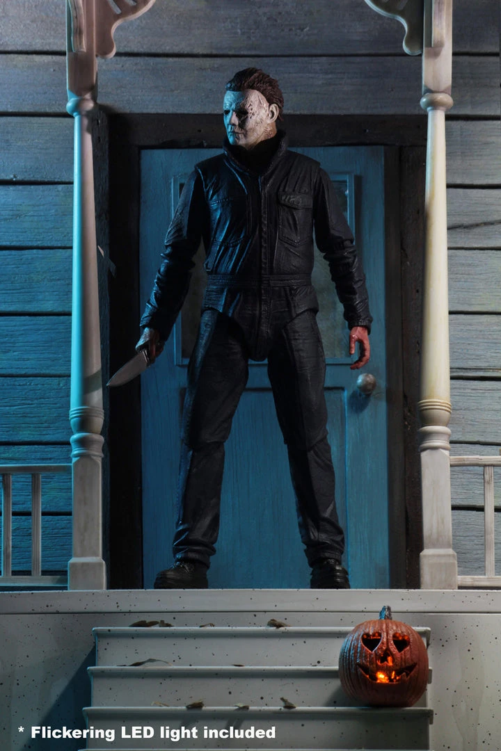 Based on his appearance in the thrilling new Halloween movie, this all new Michael stands over 7” tall and has received the Ultimate treatment, with over 25 points of articulation and tons of accessories. The Ultimate Michael Myers figure comes with 2 heads, knife, hammer, jack o’ lantern, interchangeable hands and more.