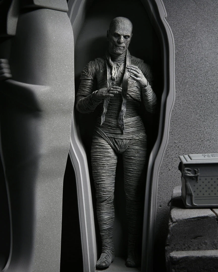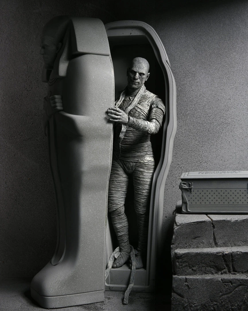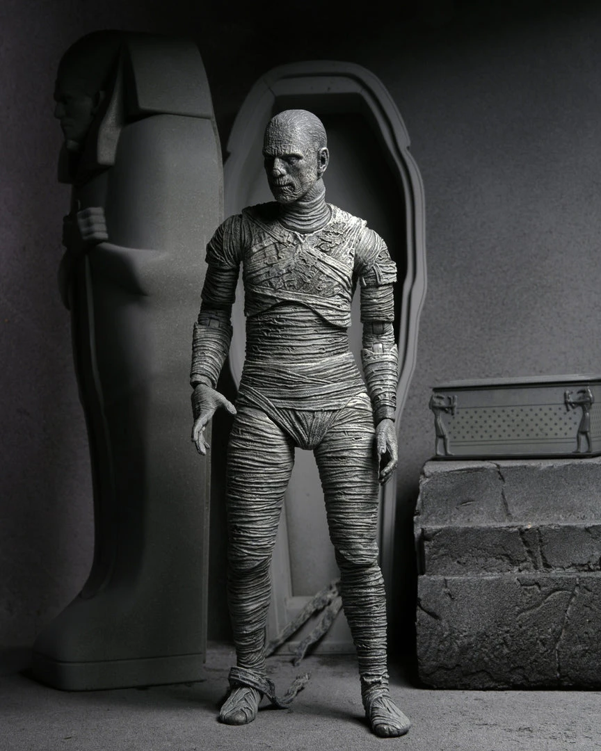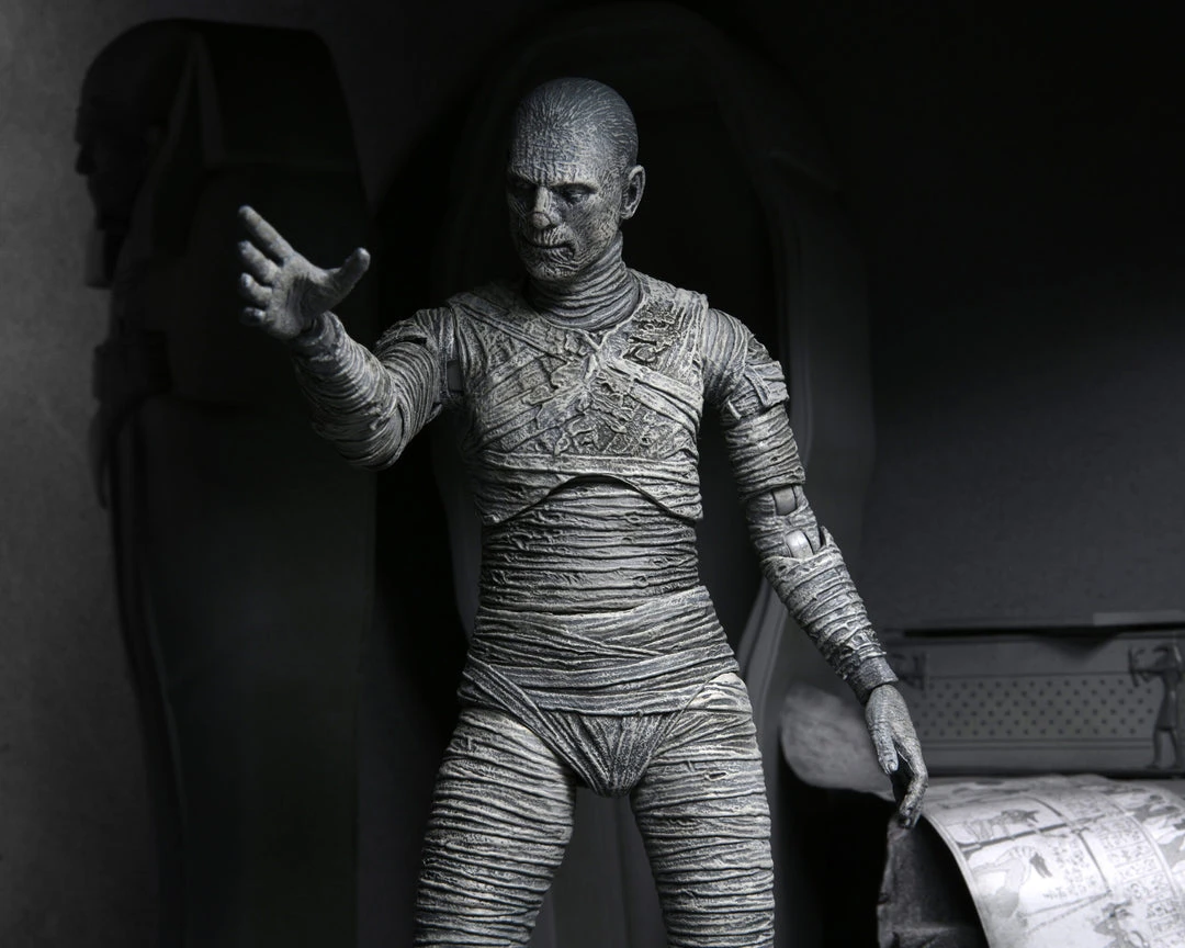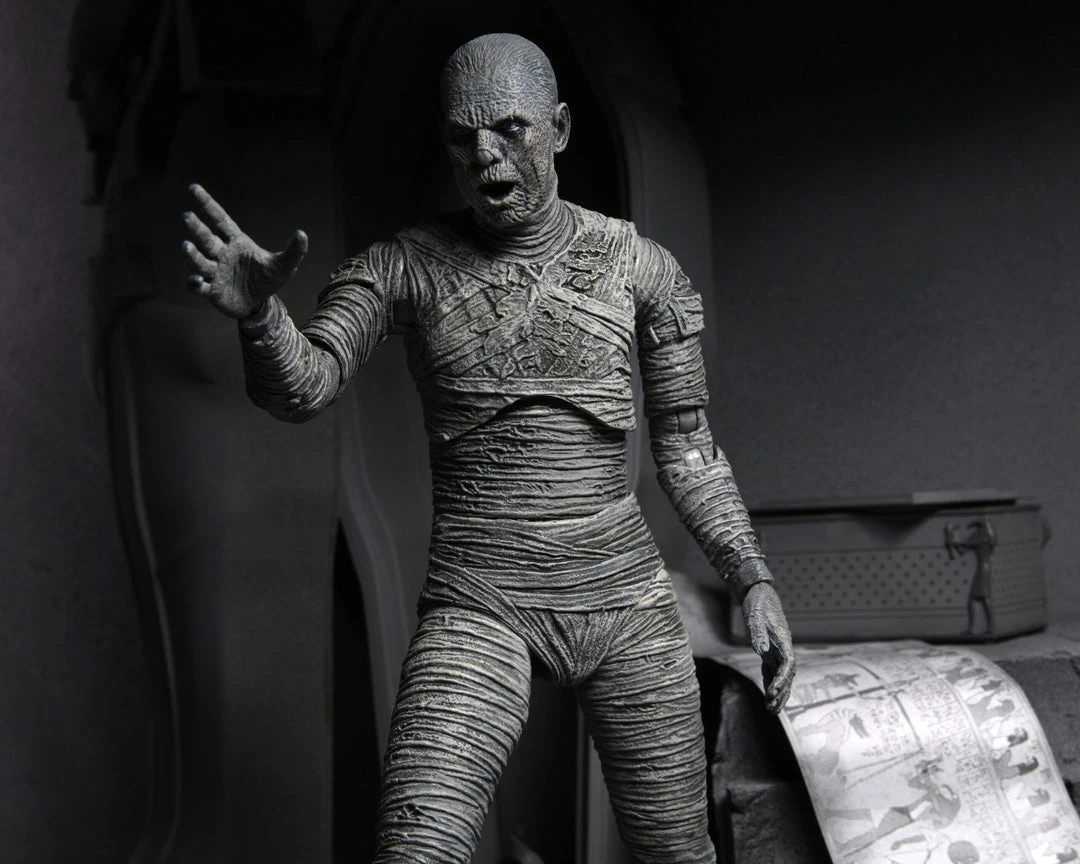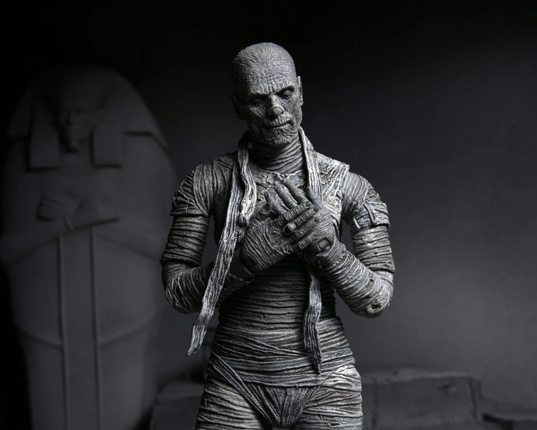 For the 90th anniversary of the extraordinary silver-screen classic, NECA presents The Mummy action figure in authentic black-and-white!