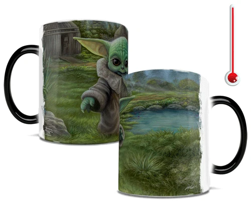 “The Child” is curious of his surroundings! This little one is always wanting to explore and play like any other child. This 11 oz ceramic color changing mug displays Grogu as he plays. The exterior of this officially licensed Morphing Mugs heat sensitive mug transforms from black as hot liquid is added, revealing the hidden image in full vivid colors.